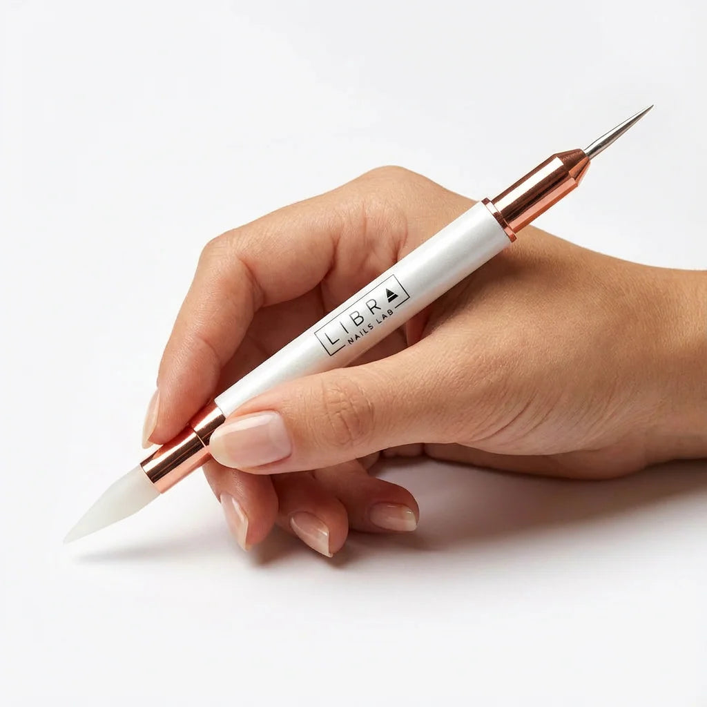 Outil multifonction pour la création de points (dotter), le mélange des produits et l’application de cristaux. L’extrémité en cire adhère au cristal sans en altérer la brillance.