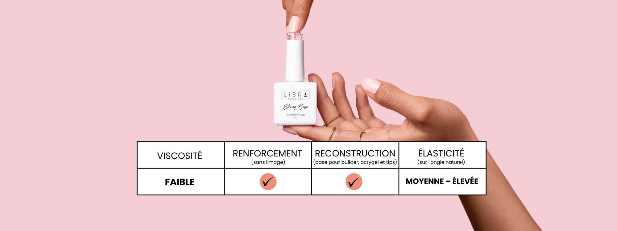 La Strong Base transparente a été le premier produit ajouté au catalogue. Évidemment, c’est une base ! Mais depuis la création de Libra Nails Lab, nous n’avons pas introduit d’autres bases transparentes. Pourquoi ? Parce que les résultats parlent d’eux-mêmes et cela n’a jamais été nécessaire.